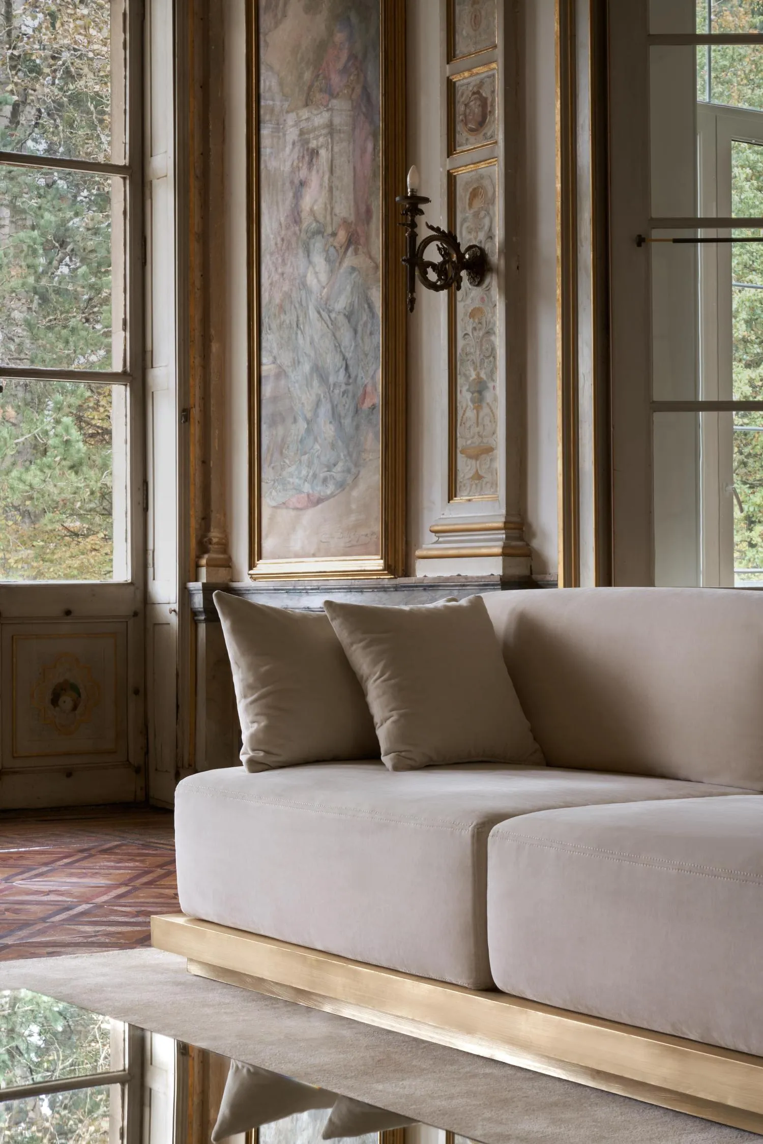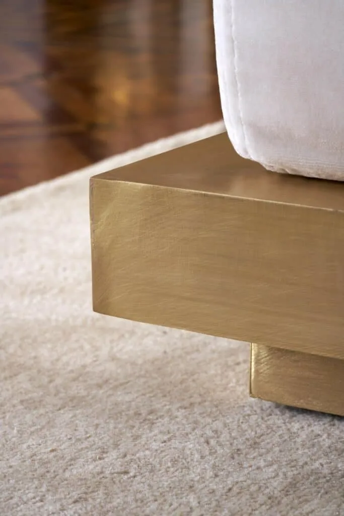 In deze indrukwekkende woning mochten wij de kussens realiseren voor een zetel op een prachtige metalen basis. De combinatie van statige basis en de op maat kussens geeft het meubelstuk een karaktervolle