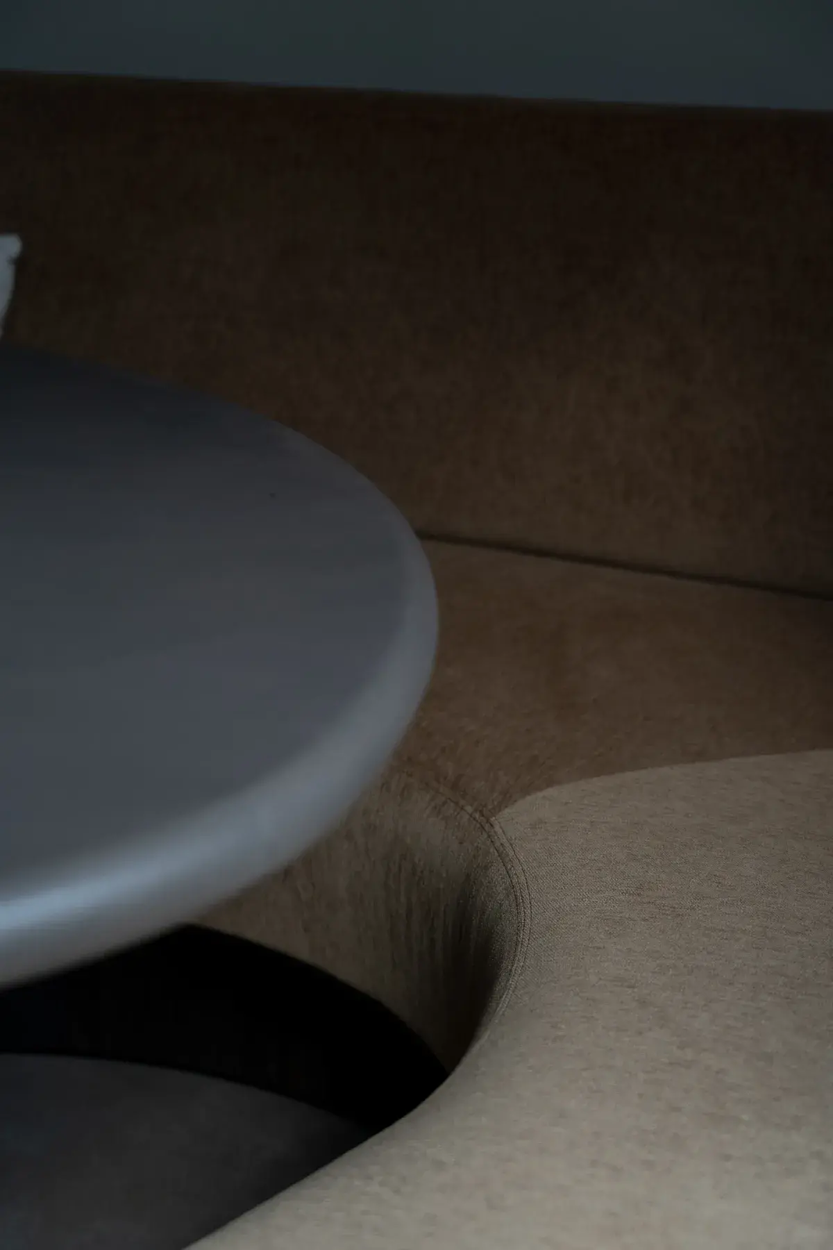 In deze prachtige keukenhoek hebben we een comfortabele en elegante zitbank op maat gecreëerd. De keuze viel op een warme bruine kleur, perfect passend bij de sfeer van de ruimte. De organische vorm van de bank voegt zachtheid en een uniek karakter toe, terwijl het comfort centraal blijft staan.